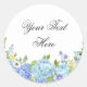 Blaue Hydrangea Blumengrün Wasserfarbe Custom Runder Aufkleber
