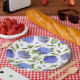 Blaue Hydrangeas im gesamten botanischen Design Pappteller