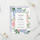 Moderne Save the Date Karte mit hellblauen/staubblauen Hydrangeas in Aquarellblau mit pastellrosa, rot, pfirsichfarben, weißer Rose, Peonies, Salbei Eukalyptus-Blätter, Ästen und Blattwerk. Sanfte und verträumte romantische Farbtöne Frühjahr Wasserfarben Blumen Designs zu Ihrem Thema Hochzeit. Weitere passende Designs und Variationen finden Sie in meinem "Blitzweddingpaperie" Shop. Und zögern Sie nicht, mich für weitere Anpassungen oder Match-Artikel zu kontaktieren.