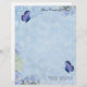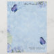 Blaue Hydrangeas, Schmetterling u. Briefkopf