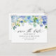 Blaue Hydrangeas und Elfenbein-Rose Save the Date Postkarte