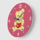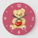 Eine individuell anpassbare Teddybärenuhr mit einem niedlichen Teddybär, der ein rotes Herz hält und Sie mit seinem blinkenden Blick auf den weich blauen Hintergrund hypnotisiert. Diese hübsche Teddybär-Kinderuhr wäre ein tolles Geschenk für Mädchen oder jemanden, den Sie Liebe.
