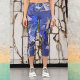 Blaue Indigostreifen, grau, abstrakte geometrische Capri Leggings