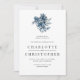 Elegante Hochzeitseinladung mit einem indigoblauen Blume Brautbouquet in Aquarell. Tief gemalte Blumen mit dünnen Konturen.