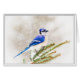 Eine blaue Jay in einem Kiefernbaum im Winter