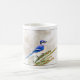 Eine blaue Jay in einem Kiefernbaum im Winter