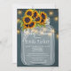 Rustikales Country-Stil geschlechtsneutrale Baby Dusche elegante Einladung mit einem lebhaften, gelben orangefarbenen Sonnenblumenstrauß, Saiten von warmen Lichtern, drei weißen Herzen und einem großen weißen, transparenten Maurerkirsch auf einem dunkelozeanblau Kalkboard Hintergrund. Füllen Sie Ihre Informationen in den Flecken, Sie können wählen, um es anzupassen, weitere sich ändernde Schriftartes und Farben der Schrift. — Die Einladung ist geeignet für rustikale Land / Bauernranch / Garten Hinterhof Sommernacht oder Herbst alle Baby Dusche Party oder Grillen. — Wenn Sie Hilfe benötigen, kontaktieren Sie mich bitte!