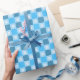 Blaue karierte Floral Geschenkpapier