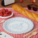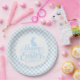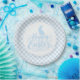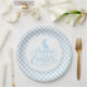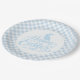Partyteller wird in einem süßen, hellblauen und weißen Karo-Osterdruck gezeigt.