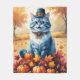 Blaue Katze im Herbst hinterlässt Erntedank Fleecedecke