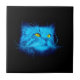 Ein fractalized Gesicht der blauen Katze mit atemberaubenden gelben Augen gegen einen schwarzen Hintergrund.