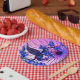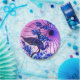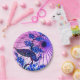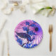 Ein beleuchteter orientalischer Sonnenschirm mit blauen Pfauen und Blume. Geschehen in Rosa, lila und Blau.