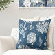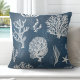 Fügen Sie diese wunderschönen blau-weißen Korallenwurfkissen in Ihr Wohnzimmer und schaffen Sie ein luxuriöses Aussehen und das Gefühl mit einem schönen Küstenstil. Diese Kissen wurden vom Designer von Totally Coast, Jillee K., entworfen. Sie sind in verschiedenen Stilen (Polyester, Zipperless, Baumwolle und Outdoor) und 3 verschiedenen Größen (16" x 16", 20" x 20", 13" x 21") erhältlich. Sie können den Stil und die Größe wählen, die Sie rechts vom Kissenbild gewollt haben, unter den Aufschriften "Stoff" und "Größe". © Gesamte Küste Alle Rechte vorbehalten 2021