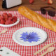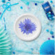 Papiertafel mit Single-blauem Kornblumen-Set vor weißem Hintergrund - Fotografie nah