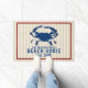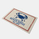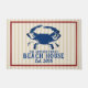 Machen Sie SeeErinnerungen in Ihrer KüstenHütte! Diese beachy Fußmatte der blauen Krabbe des Chic inspiriert Sie, um gerade die zu tun! Sie kennzeichnet die Wörter "Strandhaus", der Ihr Familienname und Küstentaupestreifen mit est. Datum. Erhalten Sie einen Vintagen Artstrand-Hüttenblick.