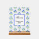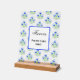 Ein Acryl-Tischplattenschild mit Holzständer wird sicherlich auffallen. Der Hintergrund und das Bild können personalisiert werden. Originalgrafik von W.B.
