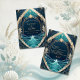 Feiern Sie Ihre Liebe an der Küste mit dieser exquisiten Hochzeitskarte. Die lebhaften Ozeanwellen und farbenfrohen Muscheln sorgen für eine prächtige Strandatmosphäre, die durch ein originelles Kunstwerk ergänzt wird. Personalisieren Sie Ihre Monografie und Details für eine wirklich bemerkenswerte Feier. Erleben Sie ein unvergessliches Erlebnis, das Ihre einzigartige Bindung vor dem Hintergrund von blauen Farbtönen und sommerlichen Strandbäumen widerspiegelt.