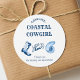 Mit unserem Cowgirl Junggeselinnen-Abschied Classic Rundaufkleber feiern Sie die Braut-to-Bräune! Der Charme des Ozeans trifft auf den Wilden Westen mit Küsten- und Western-Motiven. Ideal für einen tropischen Strand oder einen Western Girl Last Rodeo Bash. Ob sie ein Küstenmädchen ist oder Lieben Blue Coastal Vibes, dieses Dankeschön-Aufkleber hat alles. Mit Blue Western Yeehaw Stiefeln und Muschelmotiven ist es ideal für jedes Blue Aesthetic Fun Party. Von New Orleans über Nashville, Miami bis Charleston und sogar Texas und Tennessee erobert dieser klassische Rundaufkleber das Wesen von Spaß und Abenteuer. Mit diesem einzigartigen und lebendigen Aufkleber macht sie ihren letzten Flug unvergesslich!