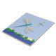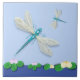 Diese Keramik Kachel zeigt mein Design von türkisfarbenen Libellen, die sich in einem wunderschönen blauen Himmel über den Wasserlilien in einer schönen entspannenden Szene bewegen. Ideal zum Aufhellen eines Tischdecks oder einer Theke. Ein großartiges kleines Geschenk.