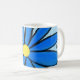 Nah-up von hübschen handbemalten blauen Farbtupfern mit gelber Mittelteil-Blume in schwarzem Geschirr. Liebe ist in schwarzem Skript um hellblaue Tasse geschrieben. Hübsche Tasse, um jemandem den Tag aufzuheitern. Original Grafik von TamiraZDesign. www.zazzle.com/tamirazdesigns