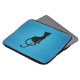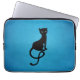 Stilvolle Laptophülse der blauen Katze mit einer schönen Illustration einer liebenswürdigen schlechten schwarzen Katze mit dem Glühen mustert auf einem Schmutz vibrierenden blauen Texturhintergrund.