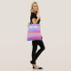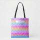 Diese Tasche ist so bunt und lustig! Es gibt ein Zickzack, leuchtendes Zickzackmuster in den Regenbogenfarben Blau, lila, Gelb und Orange, mit einem breiten Farbband, das unten koordiniert wird. Sie laden Ihren Namen mit dem Link "Personalisieren Sie diese Vorlage" hoch.