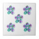 Handgefertigte blaue, lila, grüne Blume aus Stoff mit leichter lila Perle auf der Mitte der Blume auf Keramik Foto Tile für Küche und Wohngestaltung. *Alle Dinge, die Sie auf den Produkten sehen, sind handgefertigt, aber Sie müssen wissen, dass Sie ein Foto bekommen!