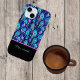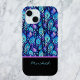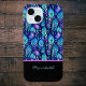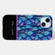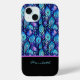 Blaue Lila Pfauenfedern auf Schwarzer Monogramm Case-Mate iPhone Hülle