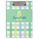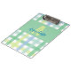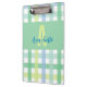 Eine Mischung aus sanft blauen, grünen und Limonen modernen Gingham-Mustern, mit einem grünen Farbblock und individuelle Name und initialen. Die Pastelltöne treffen sich in klaren Linien und verwandeln ein tägliches Schreibtischaccessoire in ein kleines Kunstwerk. Verwenden Sie die Zwischenablage, um Skizzen, Lektionspläne oder tägliche Notizen zu halten, während Sie Ihrem Arbeitsbereich Persönlichkeit verleihen. Es wurde von Eria Daisy Art entworfen und ist ein praktisches Wesentliches mit kreativem Ambiente. Klicken Sie auf die Schaltfläche Bearbeiten, um das Muster zu verschieben oder zu skalieren, und personalisieren Sie es mit Ihrem Namen und dem Initialen.