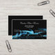 Eine große Visitenkarte für Ihr limosine Geschäft. Der Hintergrund ist mit einem Neonakzent der blauen Flamme mit einer schwarzen Limousinengraphik an der Unterseite schwarz. Zusammenpassender Briefkopf, Umschläge und Porto sind verfügbar.