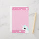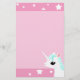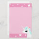 Ein Set von stationärem, eine entzückende vektorillustration eines weißen Unicorn mit einer flüssigen blauen Mähne auf einem rosa Hintergrund kennzeichnend, umrandete mit Sternen.