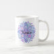 Eine elegante blaue/malvenfarbene Mandala, zum Ihrer Morgenkaffeezeit zu beruhigen. Benutzen Sie die Schablone, um mit Ihrem eigenen Namen, entweder auf das links, das recht oder beiden Seiten zu personifizieren. Um einen Namen zu entfernen verlassen Sie einfach den Schablonenkasten leer.