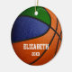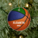 Dieses Team färbt den Basketballkornament für Jungen oder Mädchen mit dem realistischen Bild eines Basketballs ab, der aus zwei farbigen Paneelen besteht - einem blau und einem grün - die Vorderseite und Rückseite des Ornaments mit dem Namen des Spielers und dem Jahr des Gedenkens - durch katz_d_zynes personalisieren