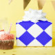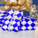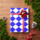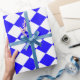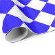 Blaue und weiße Diamanten ähneln den karierten Fahnen, die bei Autorennen verwendet werden. Dieses lustige Verpackungspapier kann auch durch die Auswahl einer neuen Hintergrundfarbe geändert werden, um das Weiße im Design zu ersetzen.