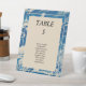 Dieses Zeichen der Tischnummer ist Teil der Hochzeitssuite "LARA - Blue Marble Modern Coastal" von E J Inkwell. Jedes Stück dieser Kollektion verfügt über einen atemberaubenden, handbemalten, blauen Marmorhintergrund, der einen ozeanisch inspiriert Effekt erzeugt. Die Kollektion setzt eine begrenzte Farbpalette ein, die ihre moderne Eleganz verstärkt.