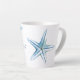 Fügen Sie Ihrer Zuhause Küstenstyle mit meiner witzigen Latte-Tasse hinzu, die mit einer Nachbildung meiner originalen handbemalten Seesterne in Blautönen entworfen wurde, mit den Worten Seas The Moment in der Hand gezeichnete Schrift Typografie. Aquarellkunst von Victoria Rigali Designs. Perfektes Weihnachtsgeschenk für Frauen unter 25 Dollar. Weitere Designs finden Sie unter VG Invites unter www.zazzle.com/dotellabelle