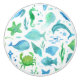 Unter dem Meer, Ozean Thema. Ein schick weißer Hintergrund mit einem wasserfarbenen Muster von Meereslebewesen, Fischen, Delphinen, Wal, Schildkröte, Seepferd, Quallen in grün, blau und aquamarin. Ideal für ein Strandhaus, eine Hütte oder eine Zuhause.
