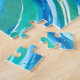 Dieses Design zeichnet sich durch ein wunderschönes blaues Meereswellen-Muster in Blau, Türkis und Weiß aus.