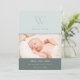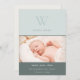 Blaue Minimal-Monogram-Foto-Geburtsankündigung Dankeskarte