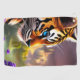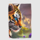 Wunderschöne Blaue Mit Augen Tiger Cub Fantasie Landschaft und violette Blumen AI generiert Kunst KI Kunst erstellt von minx267