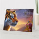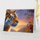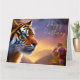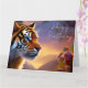 Blaue Mit Augen Tiger und rosa Blume Karte