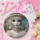Die Hübsche Vintage Puppe, die mit großen blauen Augen und rosafarbenen Wangen gezeichnet wurde.