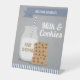 Ein wunderschönes, modernes Melk- und Keksschild mit gestreiftem Sockel, das sich ideal für eine Babydusche eignet. Die Farben sind grau, blau, braun und weiß. Es ist ein moderner Flair. Das Design hat einen Stapel Schokoladenkekse mit einer Flasche Milch.