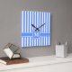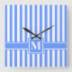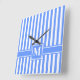 Blaue, moderne Streifen mit Monogramm Quadratische Wanduhr