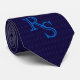 Eine sportliche blaue Krawatte mit einem kleinen, subtilen blauen Entwurf und einem eleganten kundengerechten Monogramm an der Unterseite.