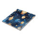Ein marineblauer Nachthimmel im Hintergrund, mit Bäumen geschmückt, mit gelben und orangefarbenen Lampen, Laternen.