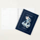 Moderne Wasserfarben, hellblau gestrichene nautische Holzanker mit weißen und marineblauen Blumen. Wandelbarer dunkelblauer Hintergrund.