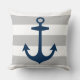 Blaue Navy-Anker mit grauen Streifen Kissen