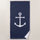 Modernes Minimalistisches Nautical Beach Handtuch mit weißem Anker auf marinebasischem Hintergrund.