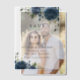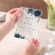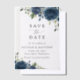 Mit dieser bezaubernden Save the Date Karte laden Sie Freunde und Familie in Stil und Set ein. Die Blume und die Grünflächen sind in marineblau.